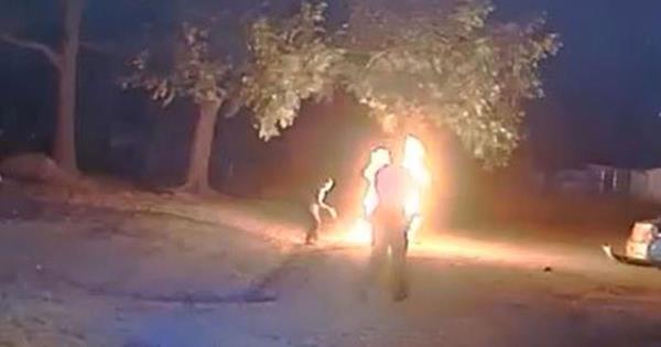 一名骑警动用了电击枪试图逮捕嫌疑人,州警方表示,当电击枪的倒钩击中盖勒时,一个火球吞没了他。
