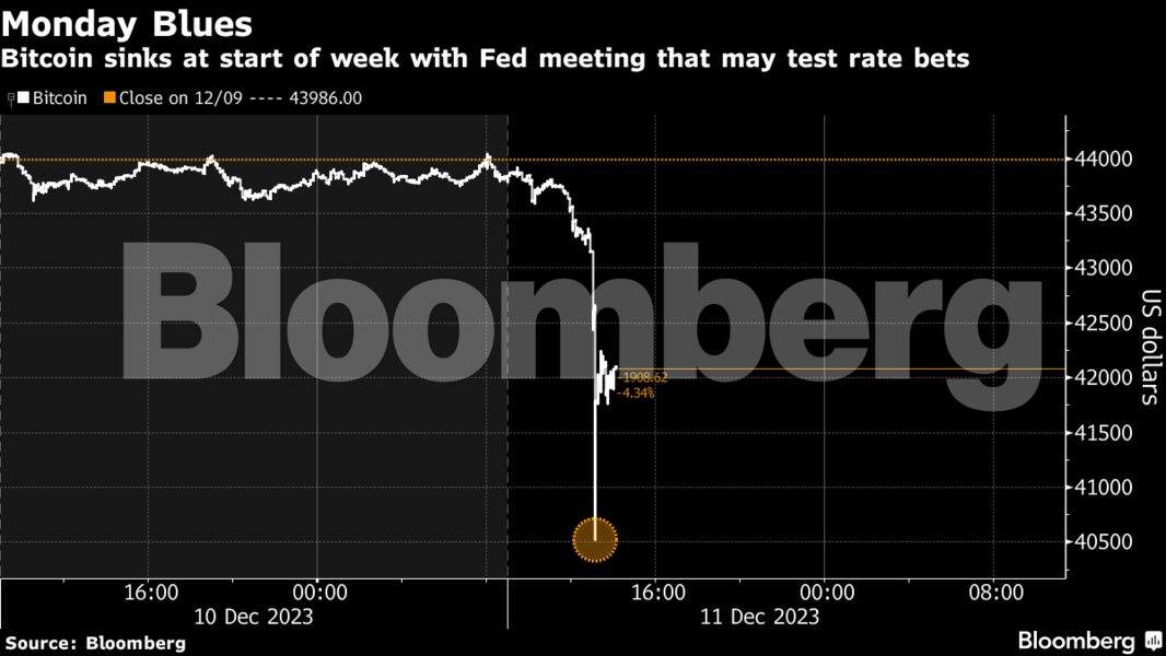 比特币在2023年的反弹中突然下跌7.5%,跌至4万美元