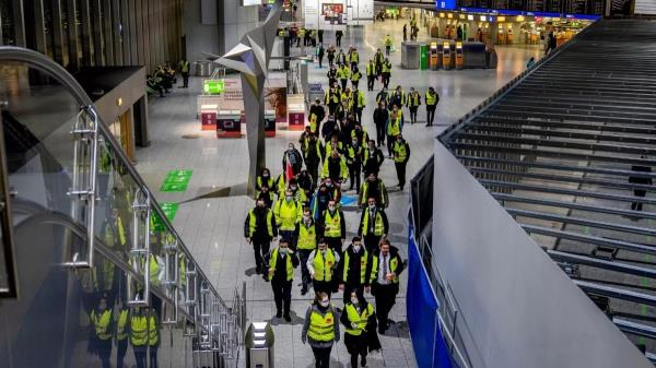 德国威尔第工会(verdi)的一名发言人表示,汉堡、斯图加特、卡尔斯鲁厄/巴登-巴登、科隆和柏林机场的航空安保人员周四开始了全天罢工。