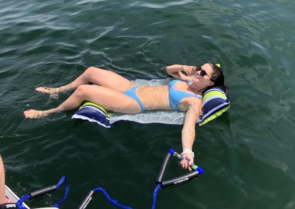 在看了一些评论后,我一时兴起买了这个。我没想到它会立刻成为大家的新宠!躺下,你一半在水里,一半在水里,这样你就不会从上面烤出来,也不会从下面冻死——这正是我们想要的。