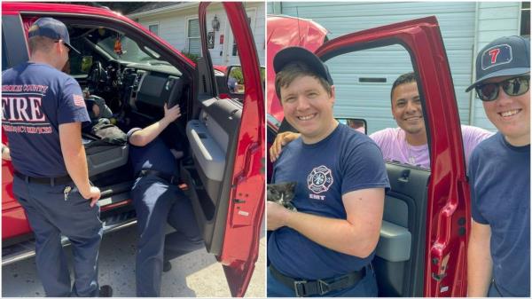 乔治亚州的消防队员说,一只小猫在主人的汽车仪表盘后面消失了,需要救援,在这个过程中,它获得了一个合适的新名字。