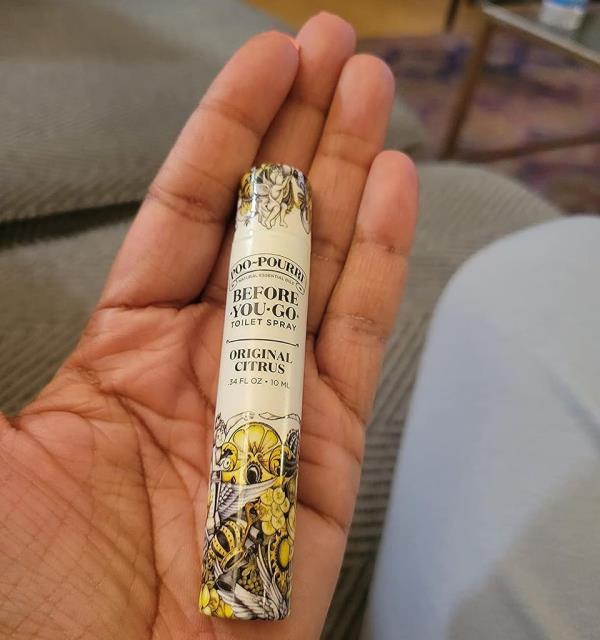 一个旅行大小的Poo-Pourri,小到可以放进你的钱包或口袋里