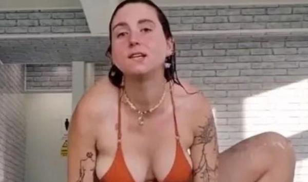 在视频中,她走出泳池,展示自己的身体,但她选择不刮胡子。
