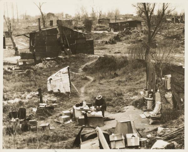那些进入加州的人经常发现自己不断地从一个农场搬到另一个农场,寻找工作。根据美国国家档案馆的资料,在联邦政府开始建立移民营地以容纳他们之前,他们住在农业种植者提供的简陋住所或蹲在城镇郊区的“胡佛村”棚户区。