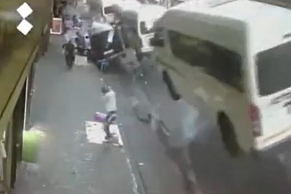 南非一段令人震惊的视频捕捉到,一名男子险些被一辆小巴压死,这些小巴被扔向空中,疑似是地下天然气爆炸。