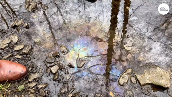 专家告诉《今日美国》,这种彩虹色的物质很可能是氯乙烯,这是一种比水重的化学物质,在2月3日诺福克南方货运列车脱轨后泄漏并燃烧。这些视频标志着灾难发生后人们对健康和环境问题的进一步关注。
