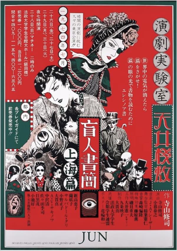 该活动展示了20世纪60年代至70年代的海报,当时地下戏剧团体如寺山的Tenjo Sajiki和Kara的Juro Situation theater正在蓬勃发展。
