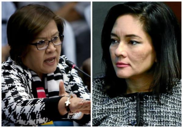 被拘留的前参议员Leila de Lima(左)和参议员Risa Hontiveros。询问者档案照片