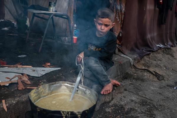 在穆斯林斋戒月的第二天,一名巴勒斯坦男孩在等待开斋饭2024年3月12日,在加沙地带南部拉法的一个流离失所者营地。(图片来源:MOHAMMED ABED /法新社)