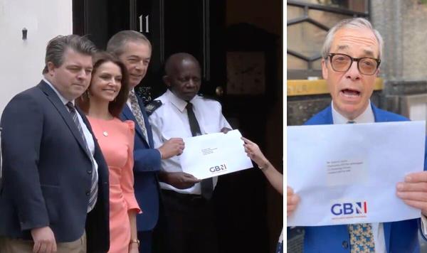 奈杰尔·法拉奇将英国广播公司的“不要扼杀现金”请愿书交给了11号,上面有30万个签名