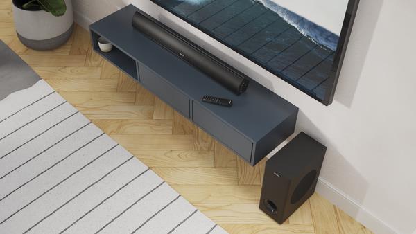 包含EQ控制,由包含的遥控器管理,允许用户微调音频到他们的特定偏好。无论你是一个电影爱好者,一个音乐爱好者,还是一个游戏玩家,这个条形音箱都可以根据你的需要进行定制,以找到理想的声音平衡。