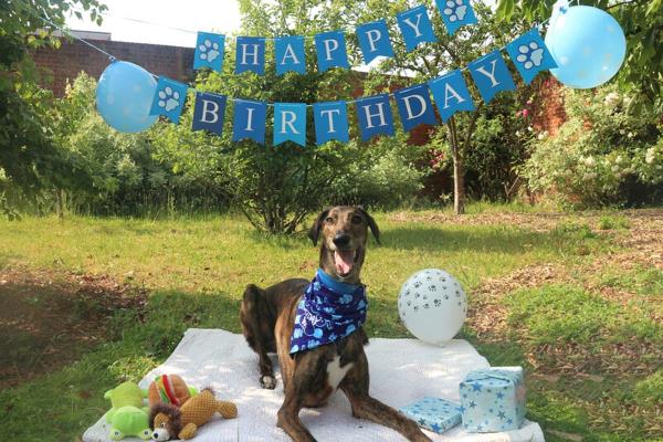 一只名叫佩里的猎犬,在巴特西的老温莎中心被照顾了18个多月,刚刚度过了他的四岁生日。