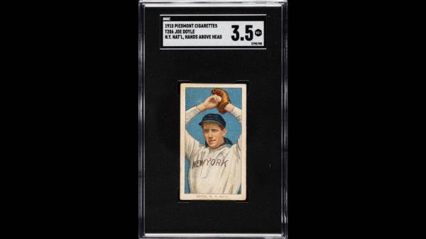 新泽西州罗伯特·爱德华拍卖公司的公关总监p·j·金塞拉说,这张1910年乔·道尔高举双手的纽约Nat 'l错误卡片价值未知,是一位出生于1900年的夏洛特男子的传世藏品。