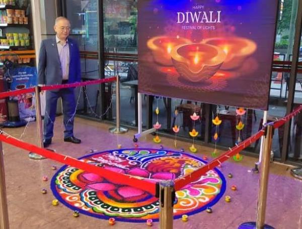 周三(11月8日),马华会长在脸书上发帖称,Wisma马华正在用排灯节的“kolam”(装饰性的大米图案)装饰其建筑。