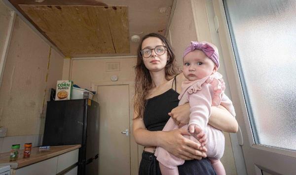 当婴儿在潮湿的议会公寓里被霉菌呛死时,惊恐的年轻妈妈绝望了