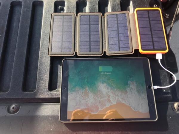 一次太阳能充电后电池续航时间约为15%,在电量完全耗尽之前还有几个指示灯。我喜欢太阳能电池上有2个USB接口和一个微型USB接口,可以同时为多个设备充电。”——Ardena