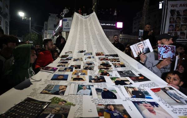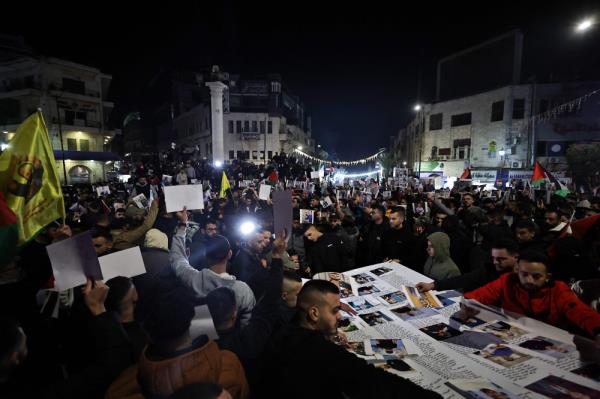 2024年1月1日,巴勒斯坦人在被占领的约旦河西岸的拉马拉抗议,声援加沙。图片由Zain Jaafar /法新社提供